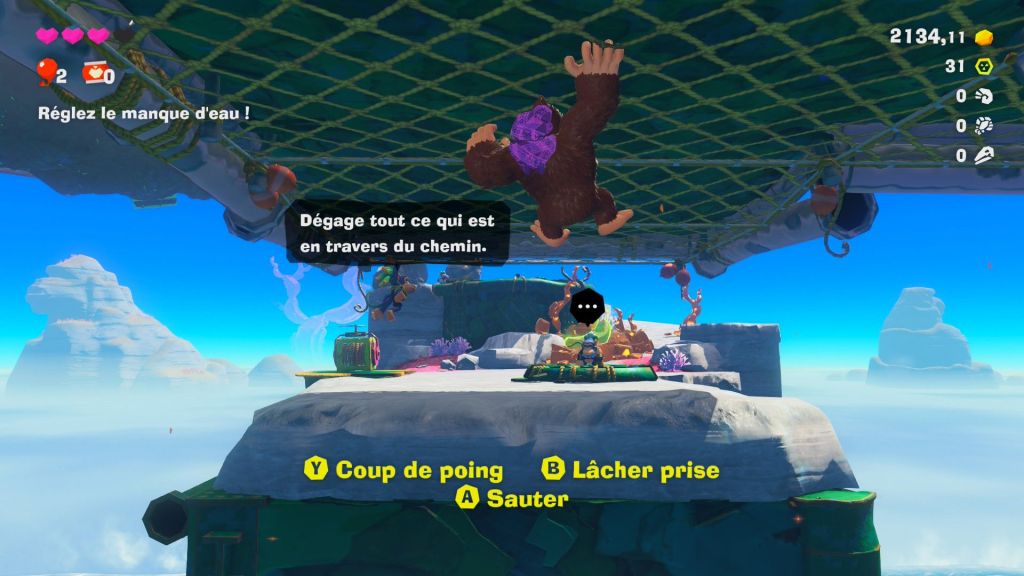 Le gameplay repose énormément, trop, même, sur une mécanique simple, tout casser avec les poings de Donkey Kong. Caisses, murs, ennemis, mécanismes… tout se résout en martelant les boutons. Et si au début, fracasser l’environnement avec la puissance du gorille peut sembler grisant, cette boucle devient très vite lassante. Il n’y a aucun raffinement, aucune montée en complexité, aucun effort demandé au joueur. Pas de combos, pas de timings précis, pas d’interactions profondes. Juste du punch-punch-punch sans imagination, qui transforme Donkey Kong en bourrin sans subtilité. Encore une fois, Knack vibes.