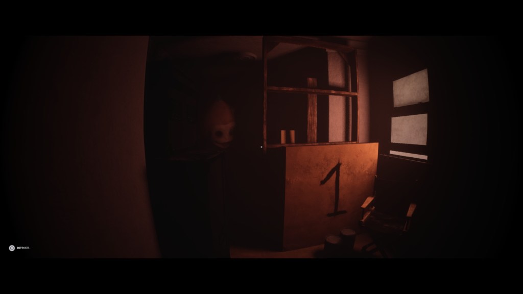 Côté gameplay, c’est assez basique, vous pourrez marcher, courir, utiliser des objets et interagir avec des éléments du décor. Le réticule rond deviendra plus épais quand une action sera possible.