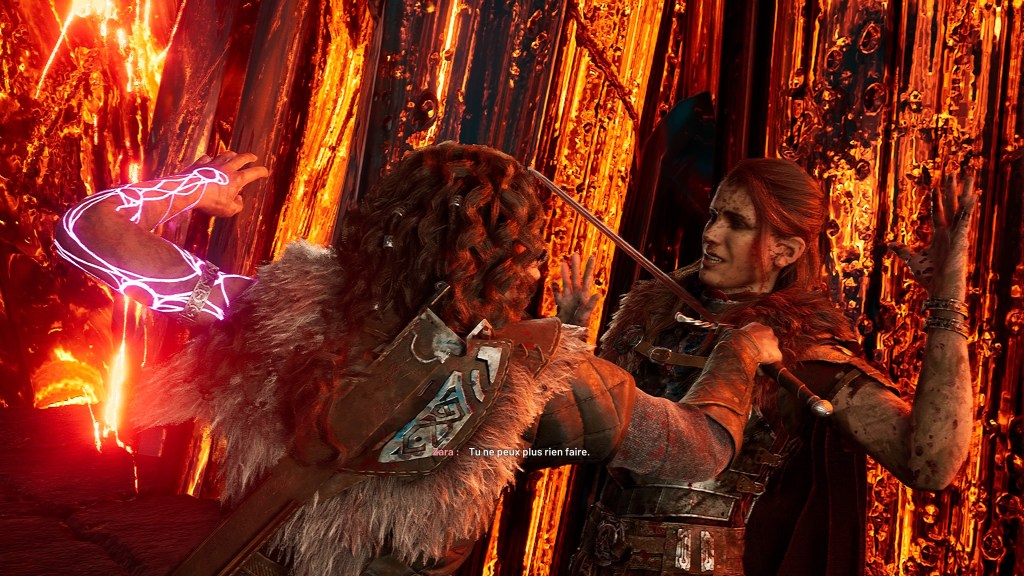 Graphiquement parlant, le jeu est plutôt joli pour un double AA, je vous rappelle qu’il s’agit du premier jeu du studio islandais Myrkur Games. Alors oui, les textures ne sont pas parfaites et il y a régulièrement des chutes de framerate, de l’aliasing et des bugs en tout genre. Il m’est arrivé d’être resté bloqué le long d’un mur en courant sur place comme un PNJ affolé, ou même d’avoir un redémarrage du jeu lors d’un affrontement avec une bestiole. Je vous avoue que ce n’est pas spécialement agréable, je vous l’accorde, mais cela n’a pas d’énormes conséquences car le jeu sauvegarde souvent et on ne perd rien. Passés ces désagréments techniques, qui seront peut-être corrigés à l’avenir par une mise à jour, qui sait, l’aventure est plutôt sympa. Chaque chapitre, le jeu en est composé de 10 au total, nous emmène dans des lieux variés, passant de plaines arides aux entrailles d’un volcan. Les panoramas sont judicieusement choisis et plutôt impressionnants. On sent que l’inspiration des développeurs a été multidisciplinaire, que ce soit vidéoludique avec la saga God of War ou cinématographique avec la saga Le Seigneur des anneaux, qui a même 2 trophées qui lui sont dédiés. Je n’en dirai pas plus pour que vous gardiez la surprise.