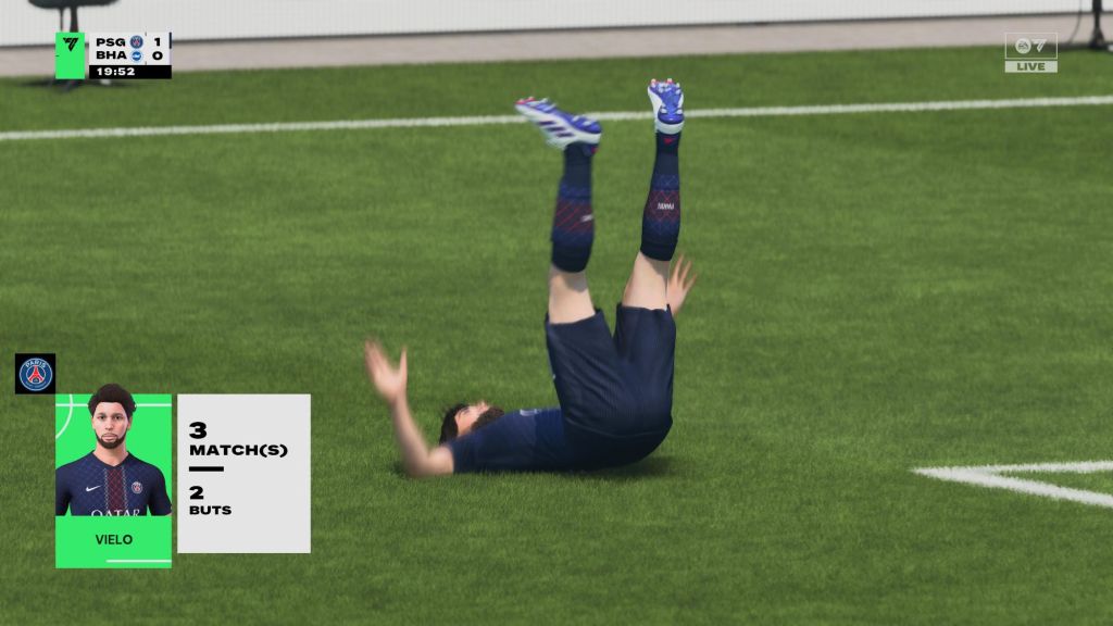 Dès les premiers matchs, la sensation de déjà-vu est écrasante. Les menus sont quasiment identiques, le moteur de jeu reste inchangé, et les améliorations annoncées sont si minimes qu’elles se perdent dans le flot. Oui, on note quelques animations supplémentaires, quelques ajustements dans la physique de balle, et une IA légèrement moins statique… mais rien qui puisse justifier l’achat plein pot d’un nouveau jeu. Sur le terrain, le gameplay n’apporte pas de révolution. Les dribbles ont été soi-disant affinés, mais on a surtout l’impression d’un recyclage. La fluidité n’évolue pas, la variété des situations reste pauvre, et certaines incohérences des précédents opus (gardien qui fait n’importe quoi, défenseurs qui oublient de marquer) sont toujours là.