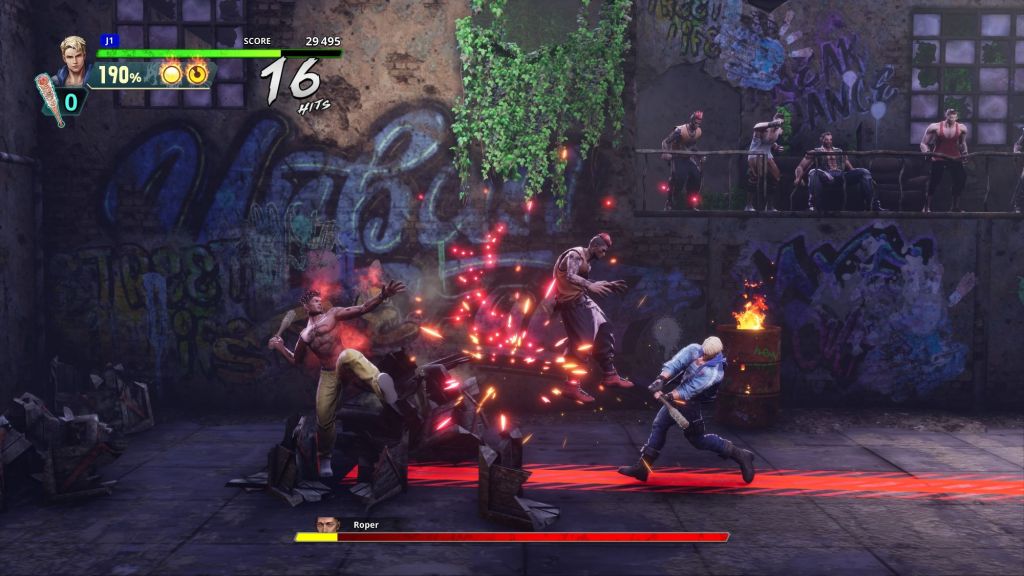 Et comme si ce n’était pas assez frustrant, le jeu est truffé de bugs. Il m’est arrivé de rester bloqué sur un tableau, impossible de passer à la suite du stage malgré tous les ennemis vaincus. Résultat, rechargement de partie obligatoire. Et ce genre de problèmes, loin d’être isolé, se répète encore et encore. Les collisions douteuses et les scripts qui ne se déclenchent pas, Double Dragon Revive donne plus envie d’éteindre la console que d’aller au bout ( même si pour le test, j’ai niqué mon week-end pour arriver au bout… )