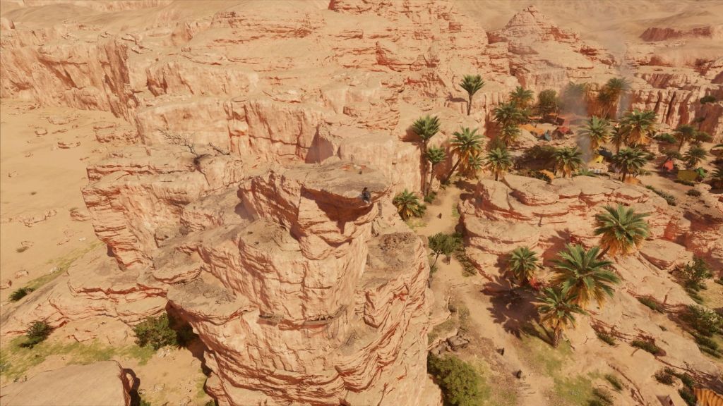 La nouvelle région introduite, cette mystérieuse « Vallée de la Mémoire », est un terrain de jeu magnifique et propice à l’exploration. Plus sauvage, plus silencieuse, presque sacrée, elle contraste avec l’effervescence de Bagdad. Entre gorges arides, montages rocheuses, le DLC déploie une direction artistique inspirée qui sert merveilleusement son ambiance introspective.