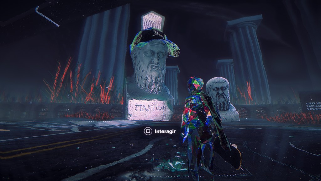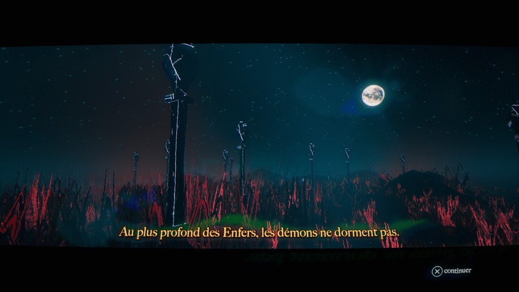 Graphiquement parlant, vous l’aurez déjà vu sur les quelques clichés au fil de l’article, c’est assez tortueux. Bon après, l’action se passe en Enfer, donc normal que l’environnement soit chaotique me direz vous. Personnellement je me sentais très mal à l’aise pendant mon aventure. Ce style graphique ne me sied guère. Je suis sûrement trop vieux pour apprécier ce parti pris du créateur. Cette ambiance stroboscopique à outrance m’a beaucoup désorienté. C’est vraiment dommage car le postulat de base était intéressant, combiner la pratique du skateboard dans un environnement apocalyptique, c’est original. Après on ne peut pas tout aimer et ce n’est pas parce que je n’ai pas apprécié que le jeu ne mérite pas votre attention. Si vous êtes adeptes des jeux de skate, il est vraiment bien fait et vous pourrez kiffer exécuter vos combinaisons favorites sur votre planche à roulettes ! Surtout que si vous êtes abonnés au PS Plus Extra ou PS Plus Premium, il est accessible dans le catalogue depuis sa sortie, alors pourquoi ne pas tenter l’expérience.