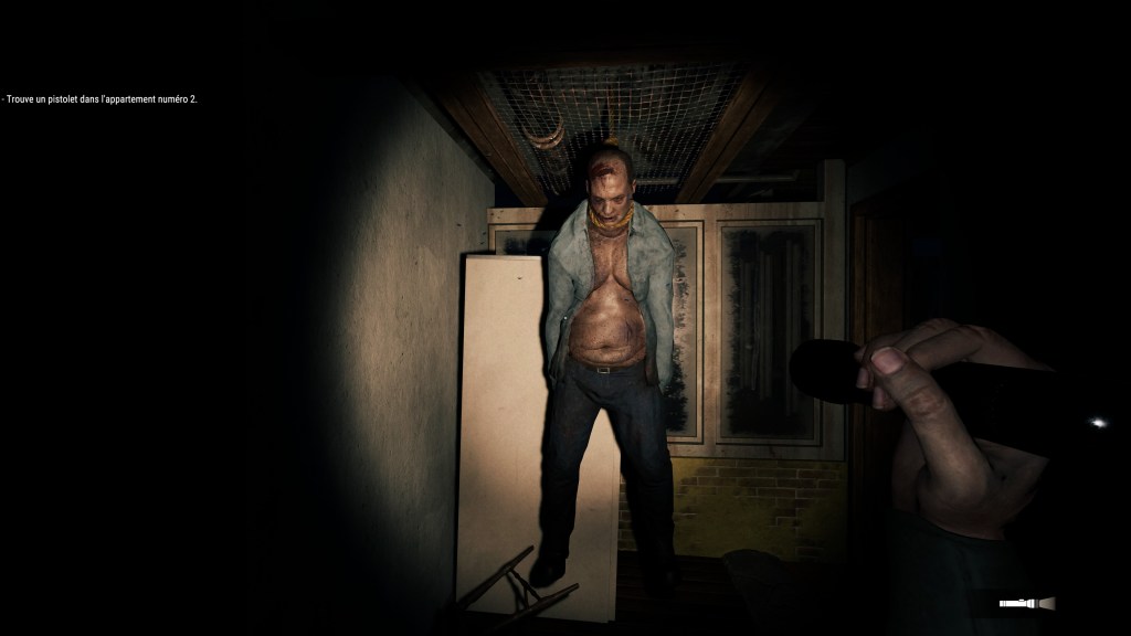 Mis à part ce problème de prise en main, ce Apartment N°129 est plutôt intéressant. Le fait de devoir enquêter en fouillant les moindres recoins de cet immeuble, à chercher des indices et à comprendre les tenants et les aboutissants de l’histoire, est cool. Après, je dois bien vous avouer que les directives qui nous aiguillent ne sont pas toujours très claires. Par exemple, à un moment donné, on nous indique de chercher à l’étage du dessus, alors qu’en fait, il fallait aller tout en haut de l’immeuble. J’ai un peu tourné en rond et commencé à rager dans mon coin, pour finalement trouver la solution. Bon, ce n’est pas super grave, mais du coup, il ne faut juste pas prendre au pied de la lettre les indications.