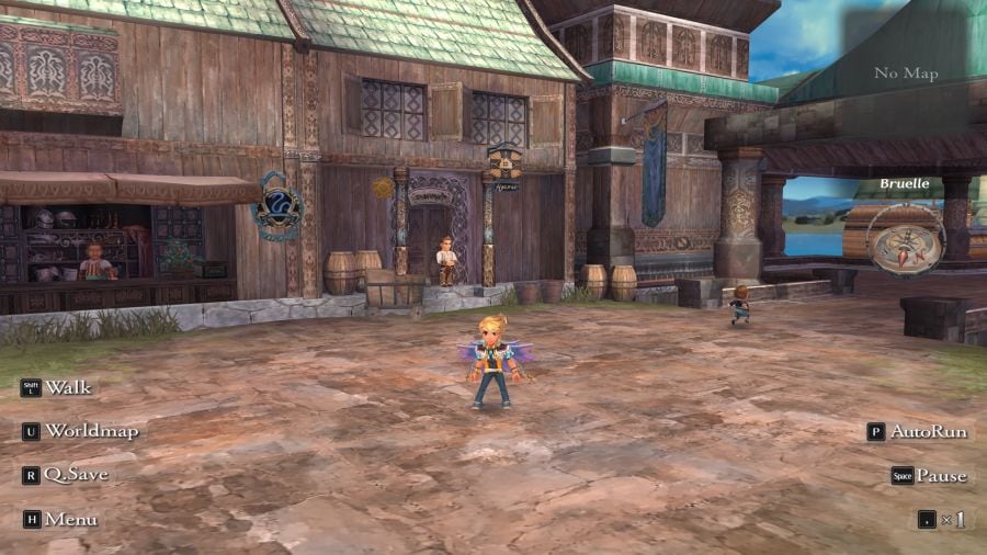 Graphiquement parlant, ce Romancing Saga Minstrel Song est plutôt agréable à parcourir. Bon, cela reste visuellement du rétro, c’est sûr, mais cela a du charme. Le vrai problème, c’est qu’il est plutôt vide. On a souvent l’impression d’être seul au monde. Que ce soit dans les villages assez peu peuplés mais surtout dans la nature quasi désertique. Alors oui, c’était beaucoup comme ça à l’époque, je le sais bien, je ne devrais pas le comparer aux jeux plus récents, mais que voulez-vous, on s’habitue vite au luxe de la technologie.