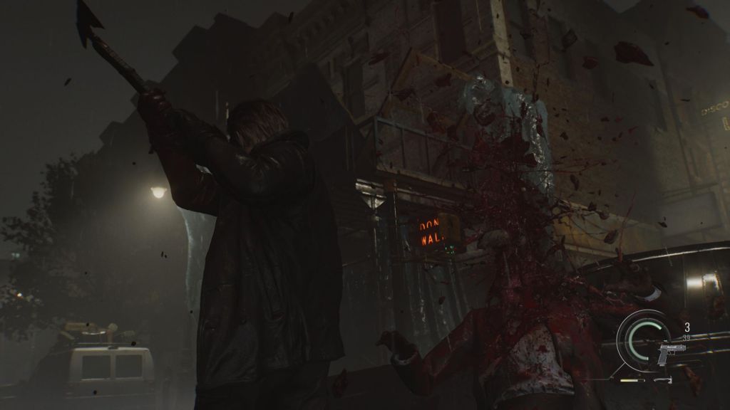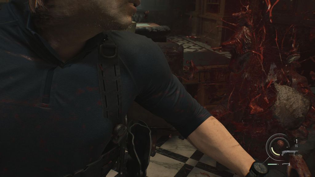 Le jeu tourne comme une horloge. Le RE Engine, que j’ai souvent critiqué par le passé, fait ici des merveilles. Les éclairages sont sublimes. Les ombres dans l’hôtel. Les néons froids du centre médical. Les couchers de soleil toxiques sur Raccoon City. Graphiquement, c’est l’un des plus beaux Resident Evil. Aucun souci majeur de performance. Animations fluides. Transitions propres. Rien à dire. Les musiques sont sympathiques. Elles font le travail. Elles soutiennent l’ambiance. Mais elles ne marquent pas. On est loin des thèmes iconiques des anciens épisodes. Rien ici ne deviendra un classique instantané de la licence. Elles sont éfficaces mais oubliables.