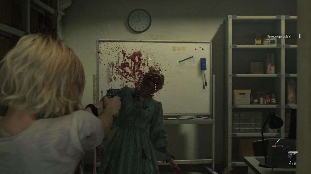 Enfin, de vrais zombies. Pas pas des parasites, pas des créatures hybrides. Des morts-vivants lents, inquiétants, classiques. Mais avec une particularité, ils ont conservé des fragments de mémoire. La femme de ménage zombie continue de faire le ménage. Un réceptionniste erre derrière son comptoir. C’est troublant au départ. Presque poétique. Puis on réalise que ça ne sert pas à grand-chose. L’idée est cool, mais elle reste anecdotique. Elle disparaît presque après la première partie du jeu. Un concept plus gadget que révolutionnaire.