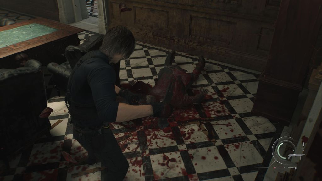 C’est le choix fort de ce RE9, proposer deux gameplay radicalement différents. Grace Ashcroft, la fragilité incarnée, elle n’est pas une combattante. Elle tremble arme en main. Sa respiration s’accélère et c’est brillant. Plus l’aventure avance, plus elle gagne en assurance. C’est probablement l’une des meilleures évolutions de personnage jamais vues dans la saga. On la sent grandir. Survivre. Se construire dans l’horreur. Ses sections sont tendues, oppressantes, presque claustrophobiques. L’hôtel Wrenwood, puis le centre de soin de Rhodes Hill, jouent à fond la carte du survival pur. Peu de munitions, gestion constante de l’inventaire, fuite plus que confrontation. le jeu permet de choisir librement la vue FPS ou TPS, et ce à tout moment. Le studio recommande clairement la vue FPS pour Grace, afin de renforcer l’immersion et la vulnérabilité, et la vue TPS pour Léon, plus adaptée à son gameplay nerveux et orienté action. Personnellement, j’ai fait l’intégralité du jeu en TPS. D’abord par préférence, je reste attaché à cette caméra dans la licence, mais surtout pour profiter pleinement du travail remarquable sur les animations. Voir Grace évoluer physiquement au fil de l’aventure est un vrai plus. Même si, parfois, certaines animations de Léon paraissent un peu rigides, notamment dans les transitions rapides ou certains mouvements de combat, l’ensemble reste très solide visuellement. Et parlons la mallette de Grace. Au départ, elle est ridiculement petite. Trop petite. On se retrouve à jeter des balles ou une plante verte pour récupérer un objet clé juste parce qu’on refuse de retraverser la map pour le coffre. Frustrant. Heureusement, on l’agrandit assez vite. Mais le contraste avec la mallette gigantesque de Léon est violent. On ressent littéralement l’injustice de leurs conditions. Avec Léon, on roule sur le jeu. Gameplay nerveux, agressif, brutal. La nouveauté ? Sa hachette. Une arme secondaire mais centrale dans son approche. Elle permet des finishers rapides, des contres sauvages, une mobilité accrue. Ses séquences semblent plus courtes… mais c’est surtout parce qu’on avance beaucoup plus vite. Là où Grace survit, Léon exécute. On retrouve ici l’ADN de RE4 Remake, affrontements dynamiques, contrôle total de l’espace, montée en puissance constante. Le problème ? Le contraste est parfois brutal. On passe d’une tension psychologique lente avec Grace à une action presque arcade avec Léon. Même si le rythme global est excellent, cette alternance donne parfois l’impression de jouer à deux jeux distincts. Le titre jongle entre horreur pure et action spectaculaire. Et parfois, la couture se voit.