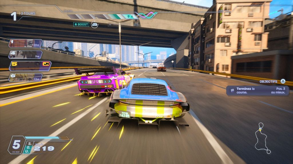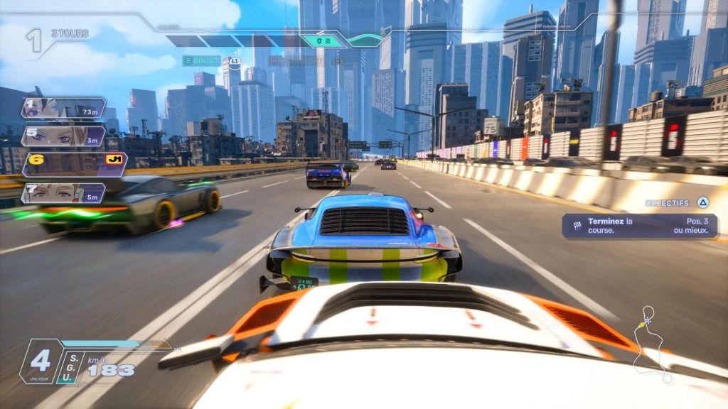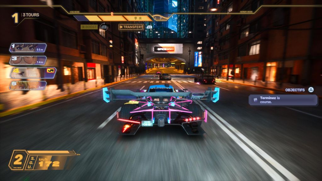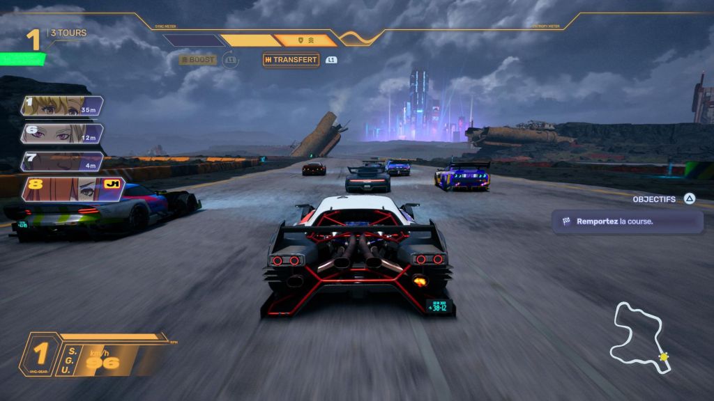 C’est là que le jeu va diviser. Si tu t’attends à un jeu de course classique où il suffit d’accélérer, freiner et prendre les virages proprement, oublie immédiatement. Screamer propose un gameplay hybride, à mi-chemin entre jeu de course et jeu de combat. Et ça change tout. Le drift, par exemple, ne se résume pas à un simple appui sur une gâchette. Il faut gérer le joystick gauche avec précision, anticiper, doser… Au début, c’est simple, tu galères. Vraiment. Mais une fois que tu comprends la logique, que tes doigts commencent à suivre ton cerveau, le jeu devient beaucoup plus gratifiant. Ajoute à ça la gestion du boost, les mécaniques offensives/défensives, et tu obtiens un système qui demande un vrai apprentissage.