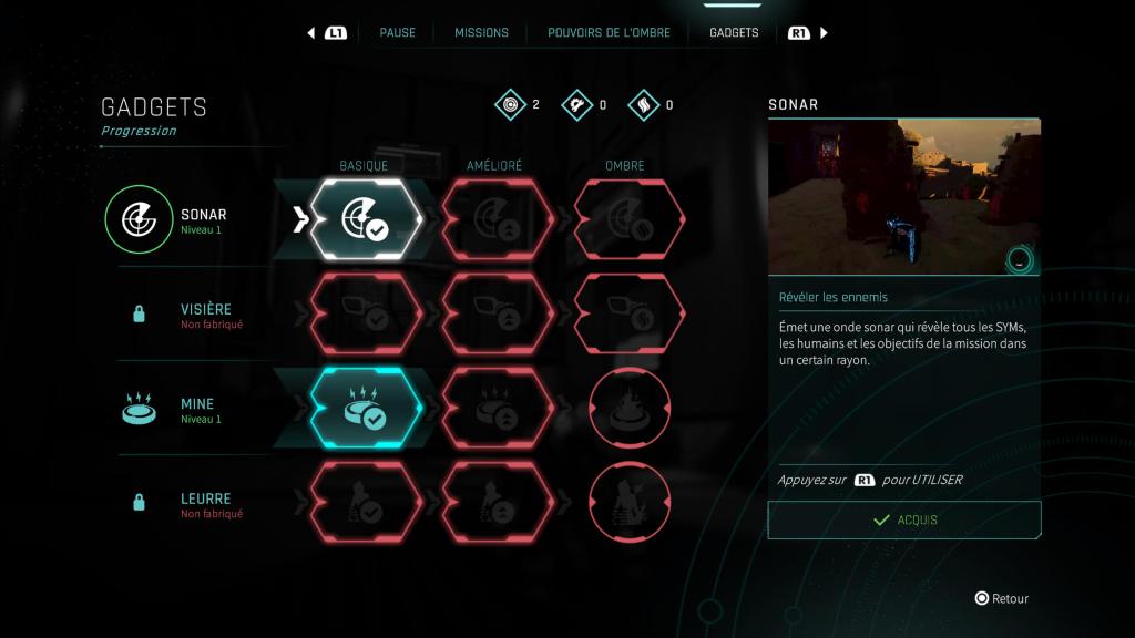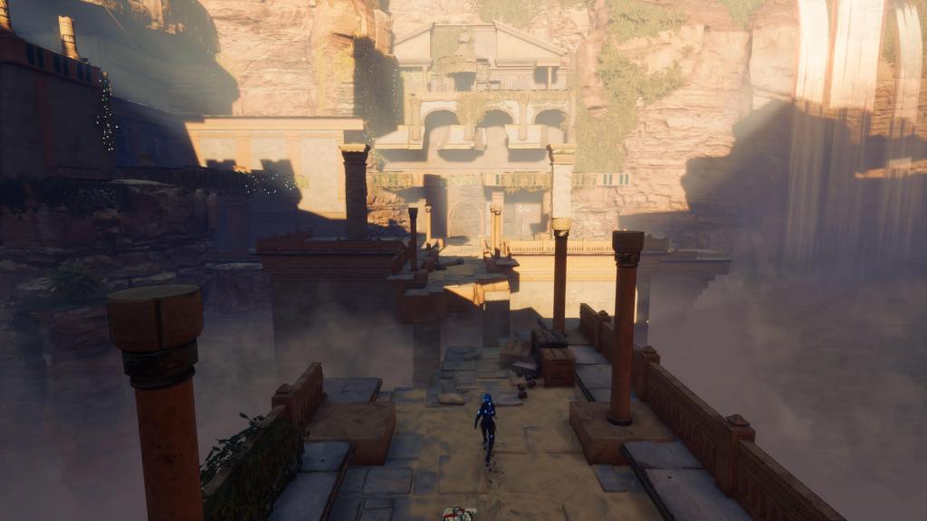 Le level design accompagne bien ces mécaniques. Les niveaux sont pensés pour exploiter les ombres, avec plusieurs chemins possibles et des zones qui encouragent l’exploration. Il y a également une petite dimension plateforme, avec des déplacements verticaux, des murs à longer et des zones à atteindre en utilisant intelligemment ses pouvoirs. On retrouve aussi un système de craft, assez simple mais efficace. Il permet d’améliorer les compétences d’Ayana et de débloquer de nouveaux gadgets. Ce n’est pas l’élément le plus profond du jeu, mais il ajoute une couche de progression appréciable et donne envie de récupérer les ressources disséminées dans les niveaux.
