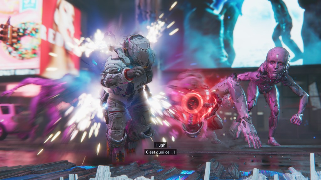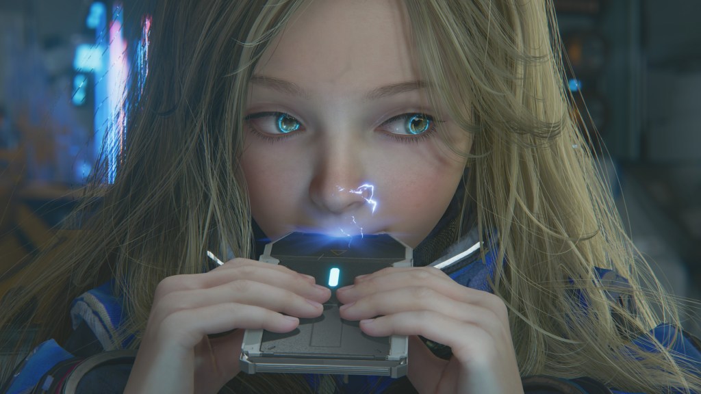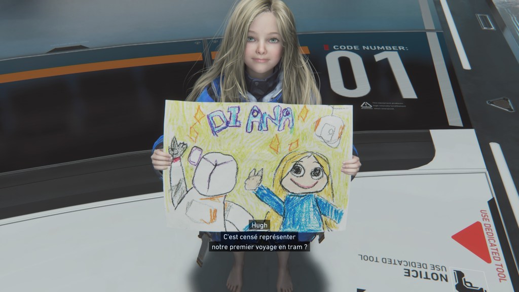 Pour ce qui est de la trame narrative, c’est plutôt sympa même si dès le début on sait à quoi s’attendre. Ce qui en revanche est plus touchant c’est la relation qui se noue entre Hugh et Diana, un humain et une Pragmata. Une complicité père-fille improbable et tellement naturelle qui m’a beaucoup touché. Étant papa moi-même, cela m’a rappelé énormément de souvenirs de ma fille quand elle était petite. Capcom a visé juste sur ce point et cela rajoute une vraie intensité dans l’expérience.