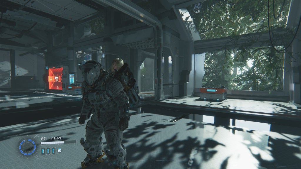 Graphiquement parlant c’est une véritable tuerie, le jeu est absolument magnifique. Alors oui je joue sur PS5 Pro et il est optimisé pour la console, ce qui fausse peut-être mon jugement. Mais franchement quelle claque !!! Que ce soit dans les passages à l’intérieur de la base ou sur la surface de la lune en apesanteur, c’est superbe. On voit tout le travail effectué par les développeurs, un vrai régal pour les yeux. Côté ambiance sonore, c’est également un sans faute.