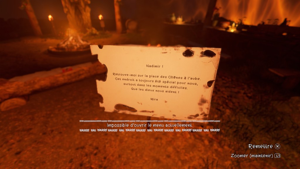 Comme d’habitude, on commence par l’histoire. Vous allez devenir un tisonneur, une sorte de mage aux pouvoirs surnaturels. Vous maîtrisez le feu et avez pour mission de stabiliser des brèches temporelles causées par des événements tragiques survenus à différentes époques de la vie du couple formé par Mira et Nadimir. Votre objectif est donc simple : il faudra parcourir les environs pour raviver les différents feux de camp que vous trouverez afin de connaître la vérité et d’influer sur les événements.